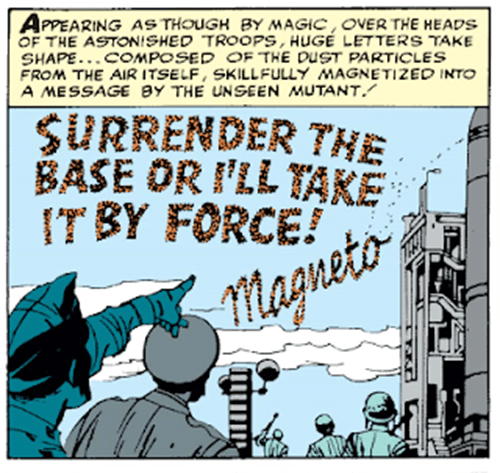 Magneto’s plan is to sabotage the U.S. Army’s missiles at Cape Citadel and display his power over magnetism, and therefore right to rule/exterminate humankind as he sees fit. Essentially waltzing in looking to take over the base, it’s an impressively ambitious opening move, and appears to be going well, until the X-Men show up. They ask nicely to get involved, are permitted to do so, and manage to defeat Magneto by using all of their powers: The particular MVP’s of this mission are Iceman, who cools the missiles’ guidance systems down so as to render them useless, and newbie Jean “Marvel Girl” Grey uses her powers to hurl a missile into the ocean. Not to be underestimated.