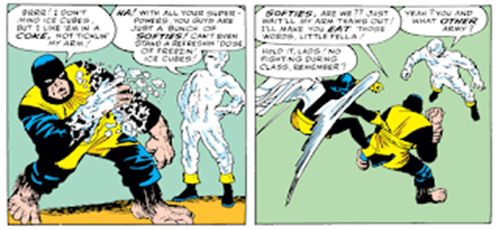 The original X-Men’s powers aren’t always, in every case, the most useful abilities: Angel can fly and that’s it, and there’s not always a use for a guy who can make ice… and the franchise will struggle to include and reinvent them as time goes by, to varying degrees of success, as mutants with similar but more impressive powers start to crop up. But I do like the scope of powers on display from the beginning: some physical, some mental, some “other.” It really sells the idea that anything could be a mutant power, whether it’s a physical deformity or the command of some element of nature. The X-gene is a lottery, and over the years we’ll see some real winners and some real… not-so-much winners.